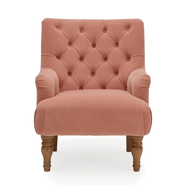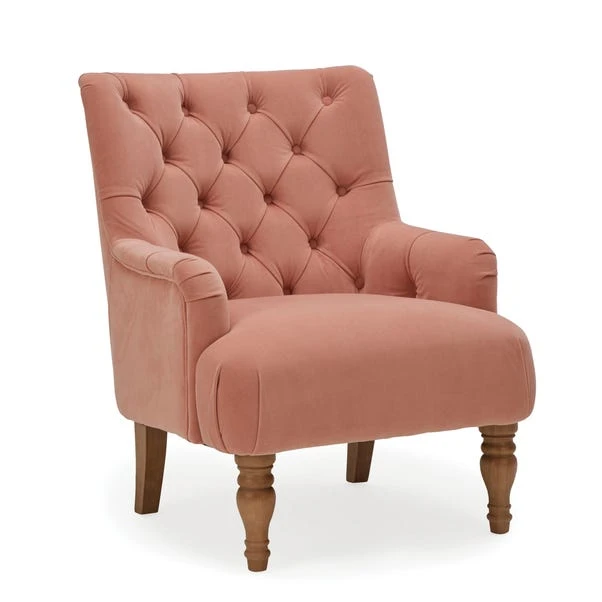Boasting a classic design, complete with gorgeous button back detailing, the Arianna chair is sure to be a stunning addition to any space. Upholstered in a premium velvet fabric and finished in a blush pink colourway, the chair comes with a comfortable foam and fibre filled seat and sturdy hardwood legs.