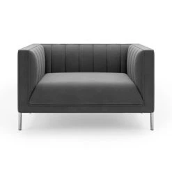 Curl up in comfort and style with the Bellamy snuggle chair. Modern and sophisticated, this snuggle chair is upholstered in a beautiful soft touch velvet fabric with a pleated back and armrests finished with a subtle piped edge detail. Metal legs make this chair stand out from the rest with an edgy contemporary flair. All these elements together makes the Bellamy the perfect statement piece for your living room. As luxuriously comfortable as it is stylish, complete with a deep padded foam seat and backrest for ultimate comfort and support.