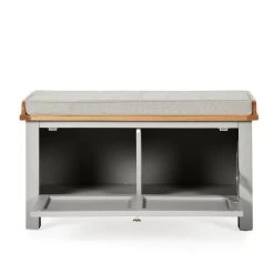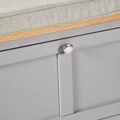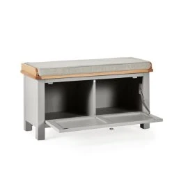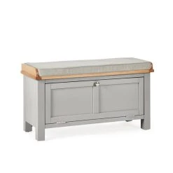 Perfect for storing away shoes or other household items, the Bromley Storage bench comes complete with a matching grey fabric cushion and a large drop-down door for easy access.