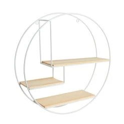 Wall art meets function with this Circle Shelf, the white frame and natural pine shelves create a stylish and perfect way to display your trinkets and more – all while adding sophistication to your space.