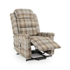 The Edith has a traditional, soft cushioned back design and checked pattern that will complement any home decor. The cushioned backrest on this rise and recline chair offers supreme comfort and support, while the smooth motor can be operated using the easy to use remote that allows this chair to be raised to a standing position for an easier transfer to and from the chair.