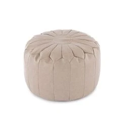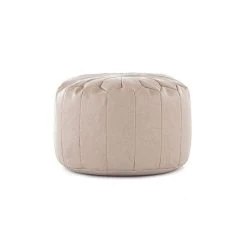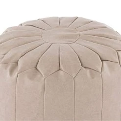 Boasting a Moroccan inspired design, this round pouffe is crafted with stitched faux leather panels in a versatile ivory colourway to suit your style and complement an array of home decors. Other colours are also available, to cater to any home.