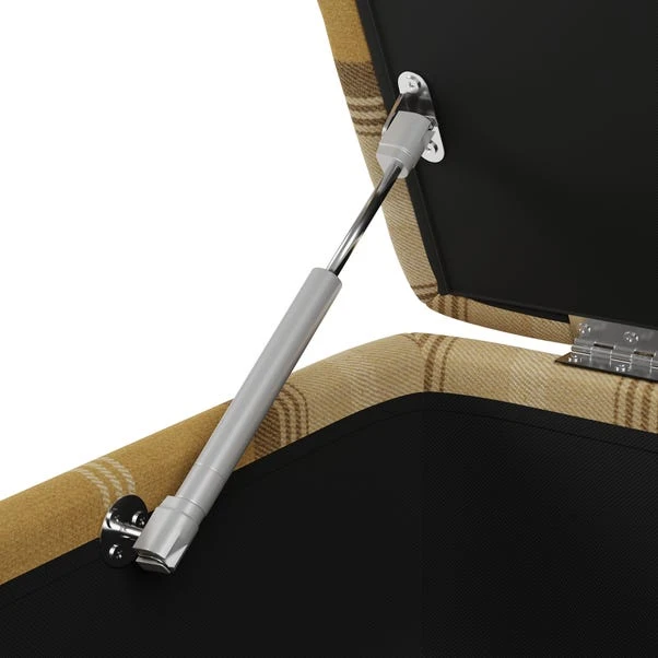 Put your feet up and relax with the Oswald storage footstool, upholstered in a soft touch, checked woven fabric. Complete with attractive pointed wooden feet and a handy storage compartment, this footstool is as practical as it is comfortable.