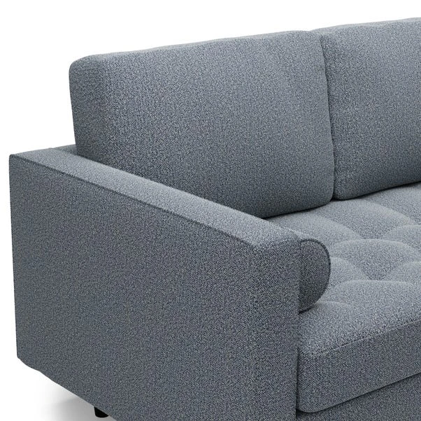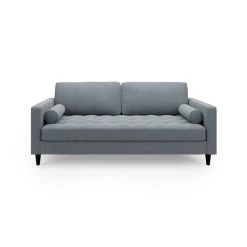 Bring some modern retro styling to your living room with the stylish Zoe 3 Seater Sofa. Finished in a trendy light grey colour, this sofa features soft and durable boucle fabric upholstery, styled with a gorgeous tufted seat cushion, piped edge detailing and stylish tapered solid wood legs. As stylish as it is comfortable, the Zoe is the perfect place to sit back and unwind, featuring a foam filled, sprung seat and fibre filled back cushions, as well as two matching bolster cushions. This sofa has non-reversible back cushions and a fixed seat cushion.