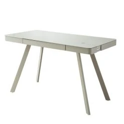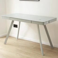Offering plenty of innovative features, the Silas Smart Desk would make a great addition to any living or home office space. This modern, part assembly desk features sturdy grey metal legs and frame, as well as a spacious felt-lined drawer with metal runners and a toughened grey glass top.