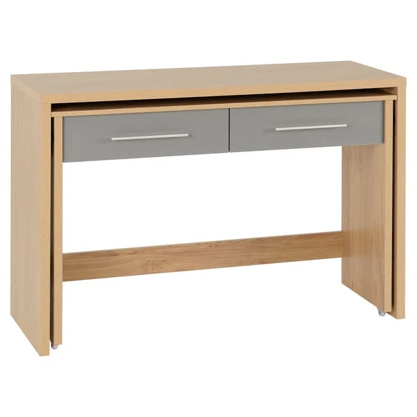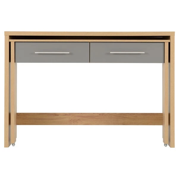 Ideal for smaller office or living spaces, the Seville slider desk makes it easy to transform any space into a home office. Thanks to the handy pull out section, you can quickly transform this desk to almost double your workspace, and then easily slide it back under to save space. This stunning self-assembly desk comes complete with two spacious drawers in a choice of white or grey fronts.