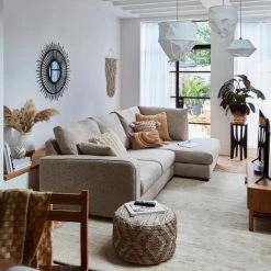 We have the perfect seating for when you want to relax, or for when your friends come round. Made from recycled cotton and jute, this stunning pouffe in a natural colourway complements an array of decors. The looped diamond detailing on its side contrasts beautifully with the multi-tonal, soft cotton. Its many uses and stylish looks make it a welcome addition to any living space.